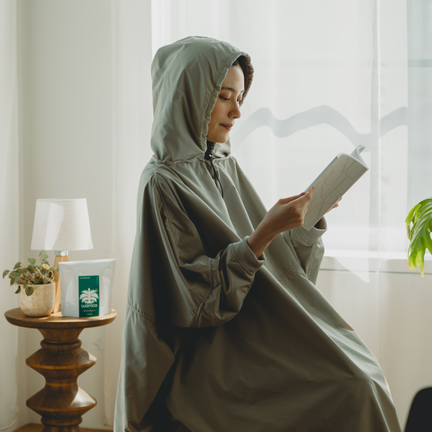 外側は熱を逃がさず、内側はさらっと。汗冷えしにくい2重構造で、蒸し時間を最後まで心地よく過ごせます。